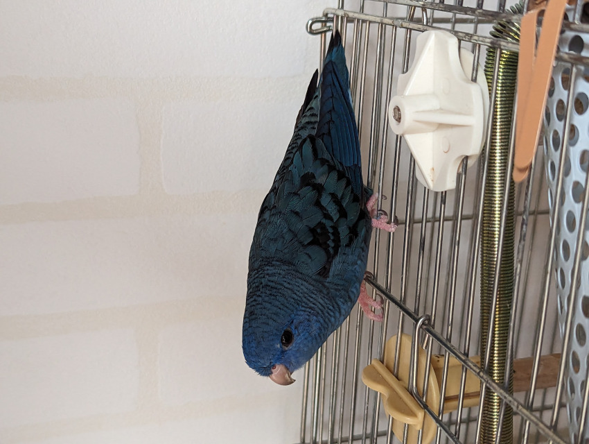 サザナミインコがご飯を食べ終わってまったりしているとこと悪いと思いつつ、新聞紙交換や各種コンポーネントの掃除をします。