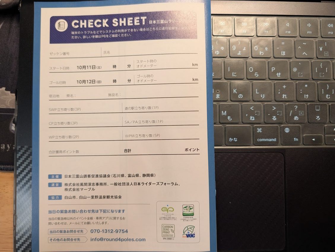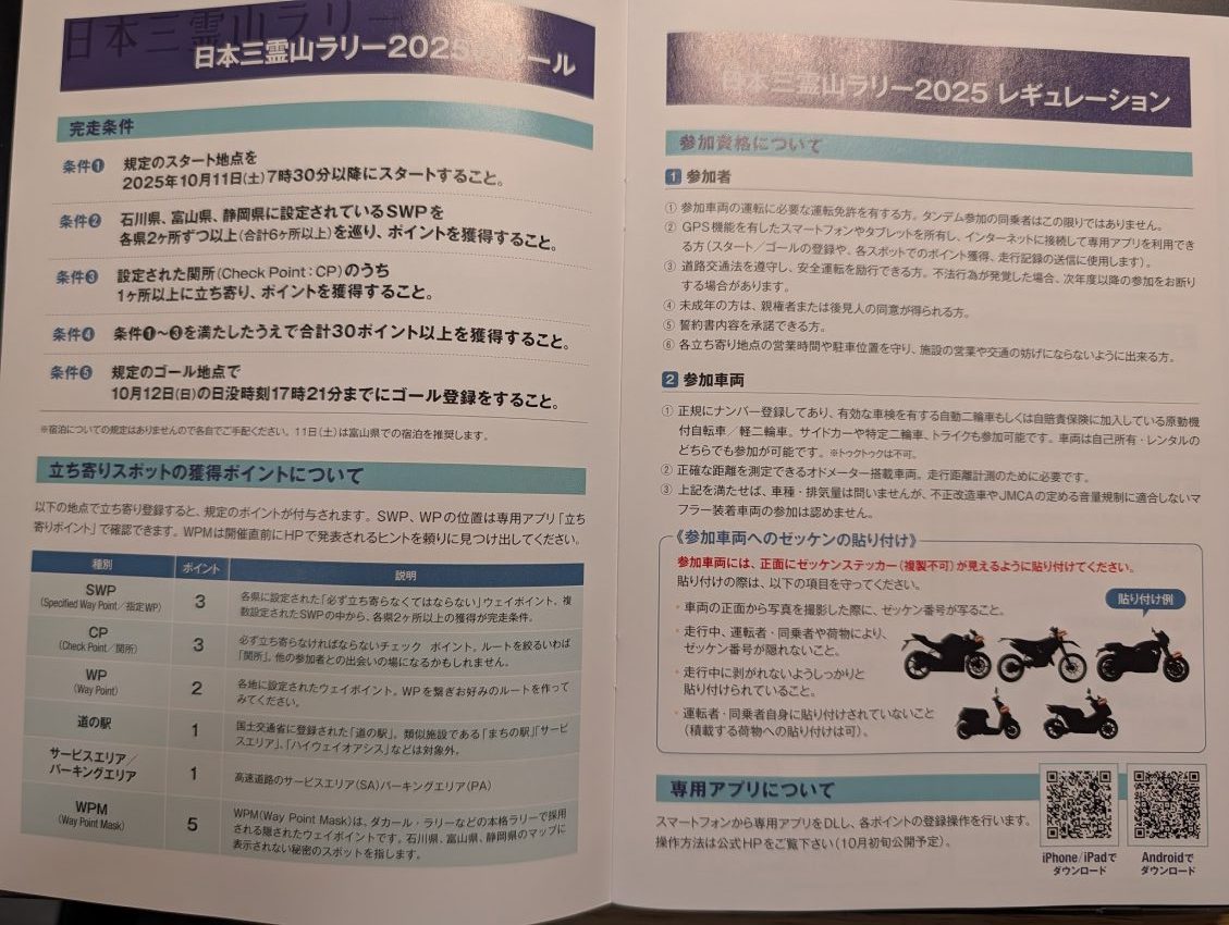 開催まで一ヶ月を切った日本三霊山ラリー2025ですが、ルールブックやゼッケン等が入った「事前発送物」がとどきました。