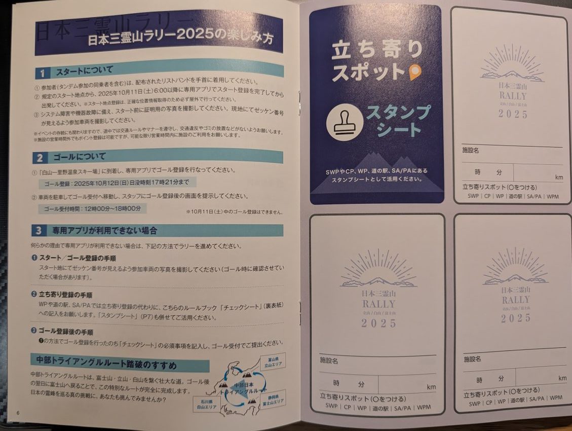 - WPや道の駅、SA/PAでは立ち寄り登録の代わりに、こちらのルールブック「チェックシート」(裏表紙)への記入をお願いします。「スタンプシート」(P7)の併せてご活用ください。