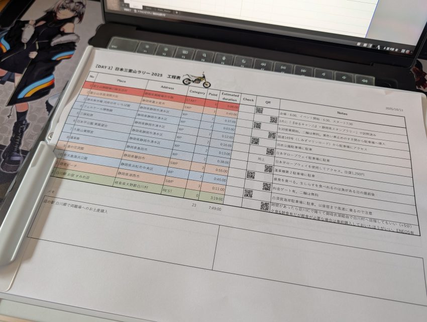ということで、きたる日本三霊山ラリー2025参加に向けてルートを確定させてという話でした。