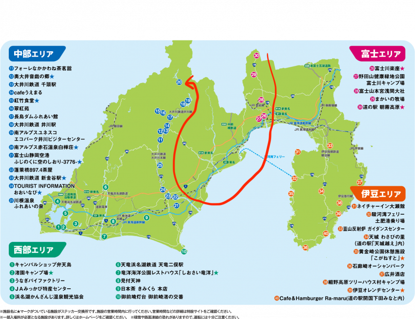 行ったとは言え、「富士エリア」「中部エリア」だけで海沿いはほぼ走ってないので、折角ならと、西側を攻めることにしました。