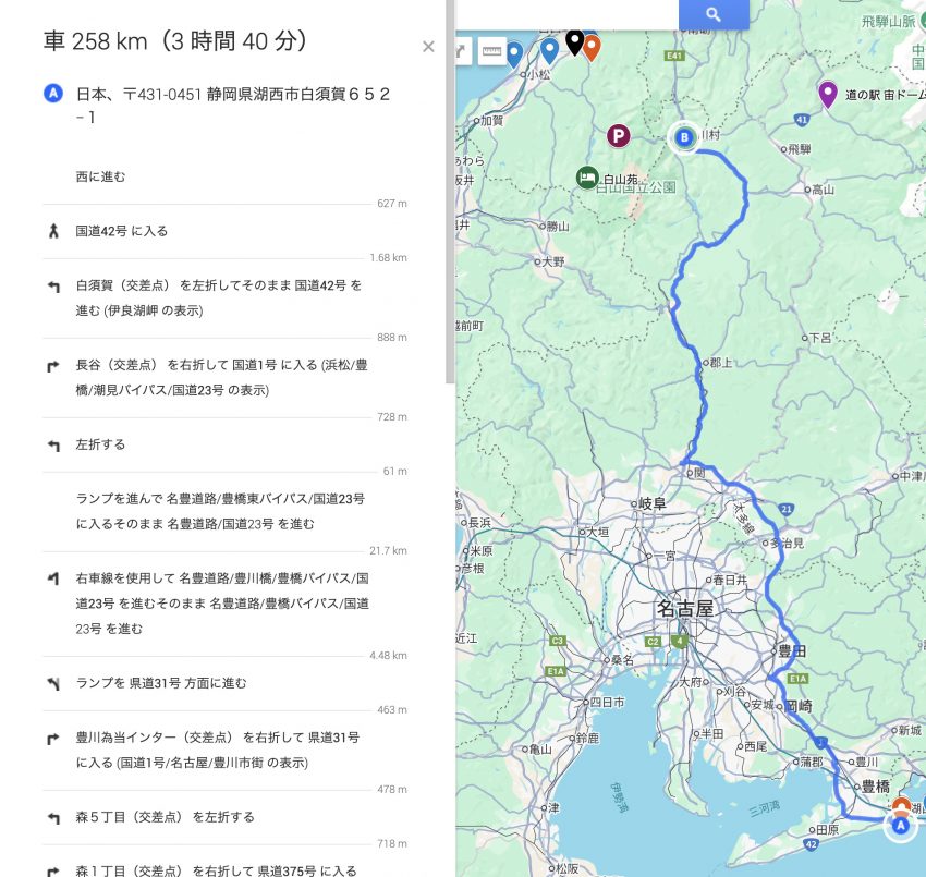 初日は、静岡県と宿泊のため岐阜県へ立ち寄ります。