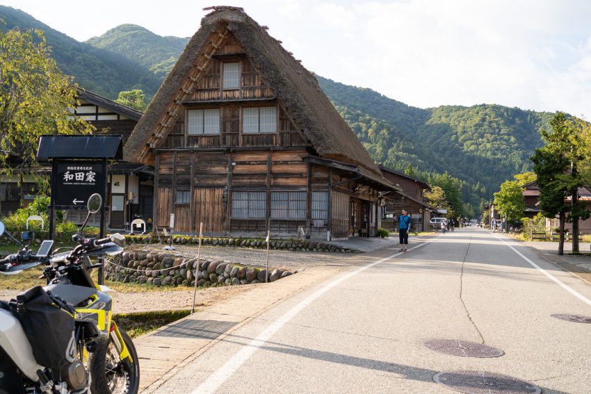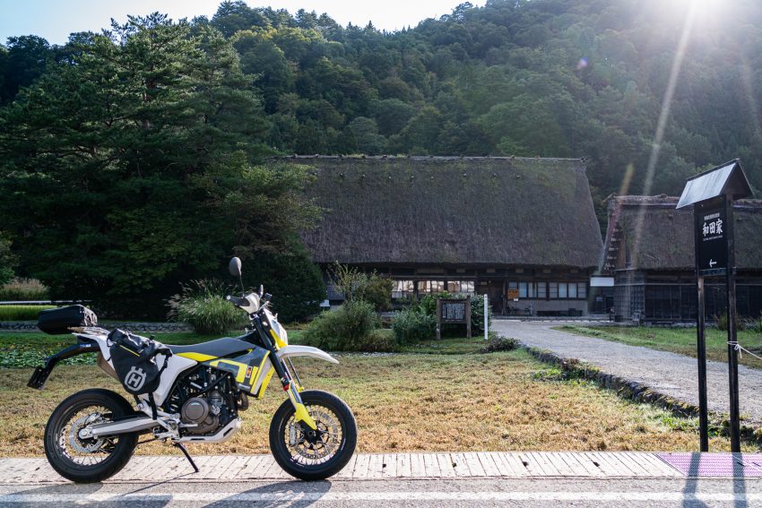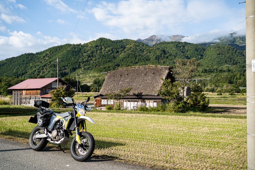 DAY1とはうって変わってご覧の天気なので、張り切ってオフジャージ+オフパンツ+オフヘルの3点セットを身にまとい、およそ白川郷とは場違いなその格好で散策する姿は不審者と言われてもいいわけ出来ませんね。