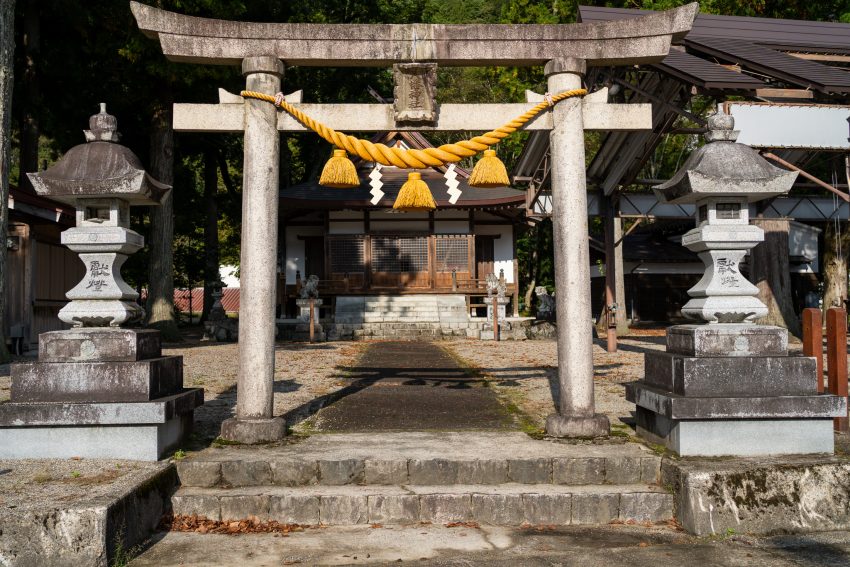 モンベル立山ベースキャンプ近くにある神社で、七五三のお参りをしている家族連れがいました。