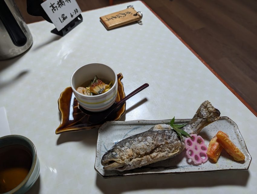 そして夕食がめちゃくちゃ豪華で、量と品数、味、どれを取っても最高でした(日本酒は追加注文)。
