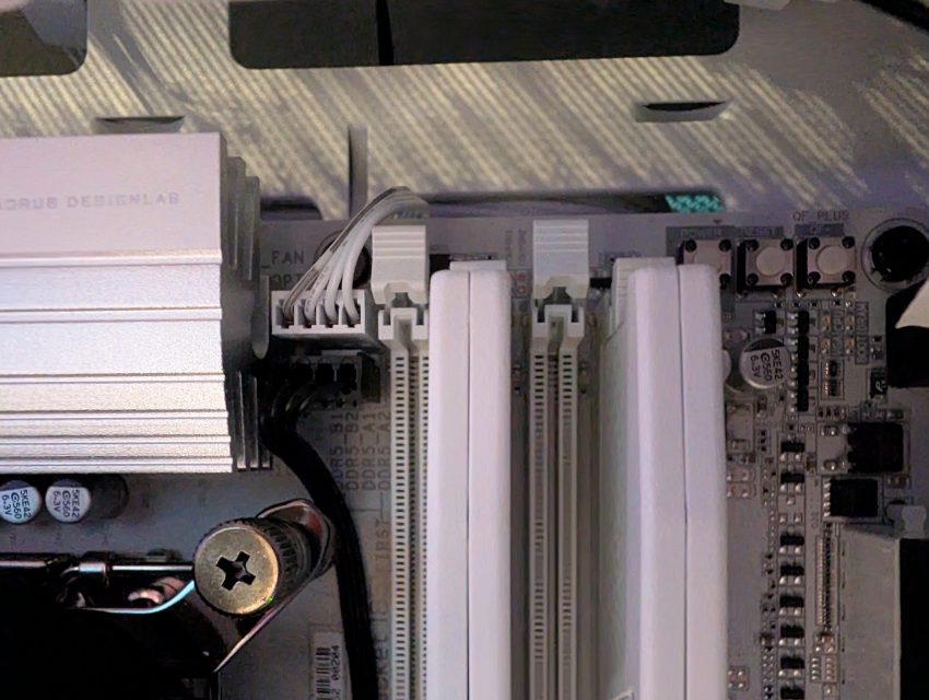 ファンの向き的にもコネクタのクリアランス的にもこの向きが正しいワケですが干渉します。
