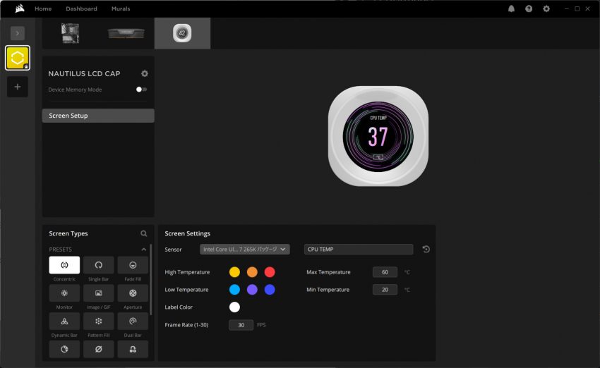 iCUEにて水枕に表示する項目やデザインを変更できます。