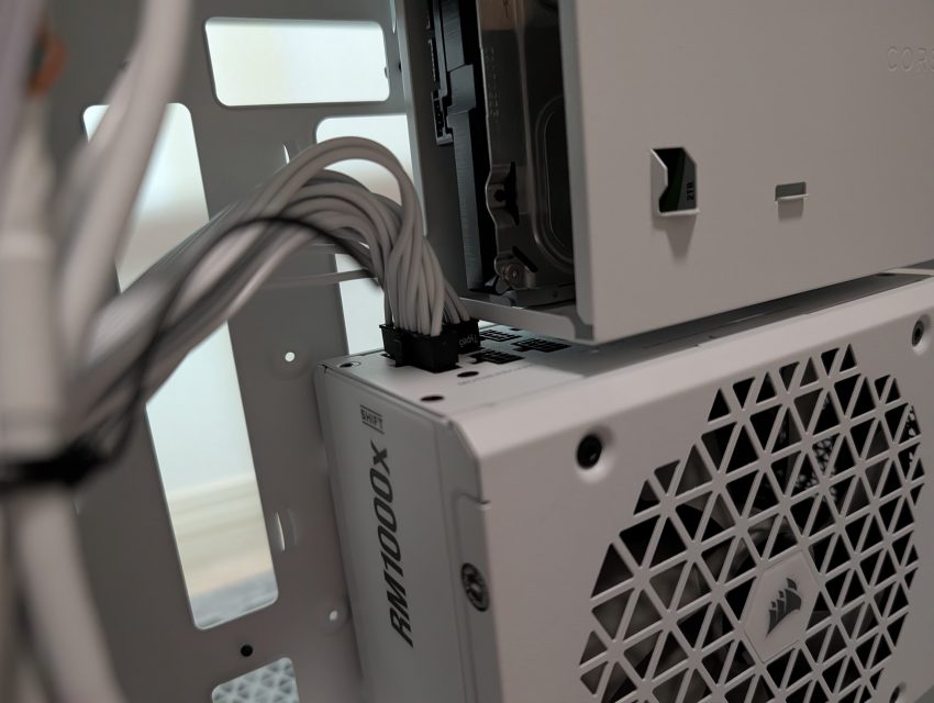まあそもそもの想定としてストレージは全てM.2 SSDしか使わない想定だったので、実用上なんの問題もないのですが、コルセア独自規格とも言えるサイドプラグイン方式はオススメしません。普通のPC電源を買いましょう。
