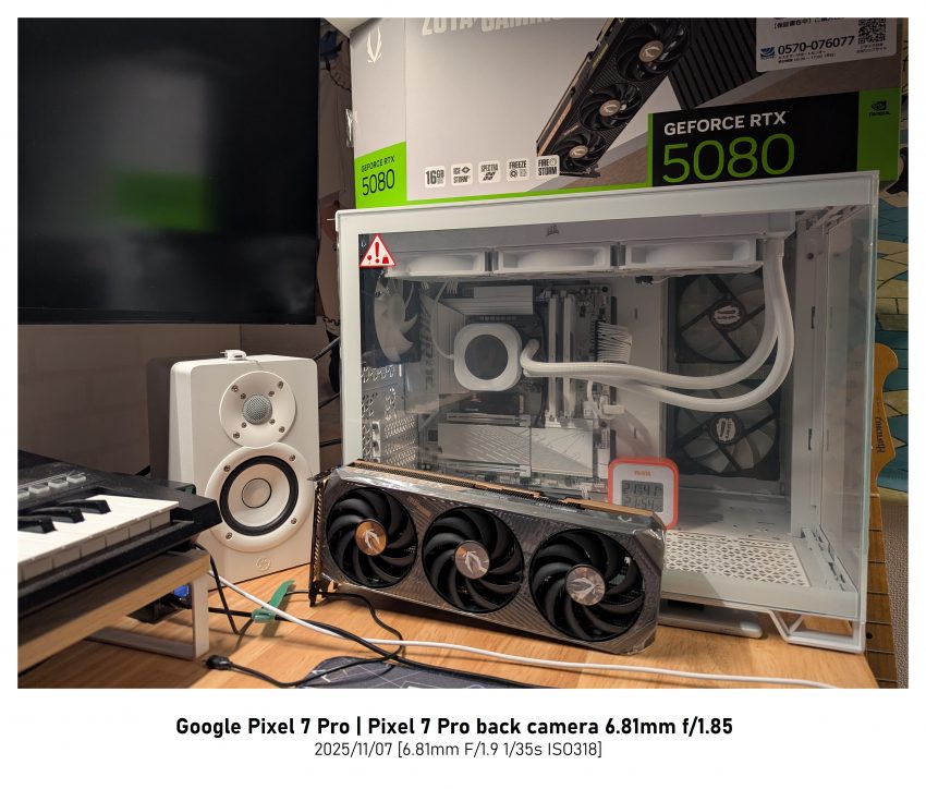 簡易水冷のCore Ultra 7 265KとRTX5080という組み合わせで、マザーボードはあえてのGIGABYTE製。