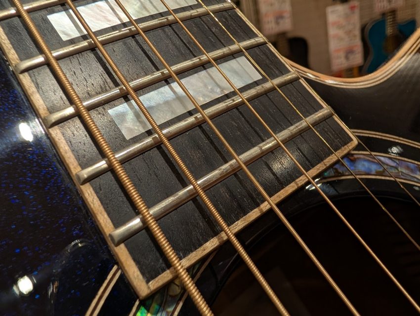 アコギとは思えないくらい弦高が低く、20フレット目の6弦で0.070インチです。凄く弾きやすい。