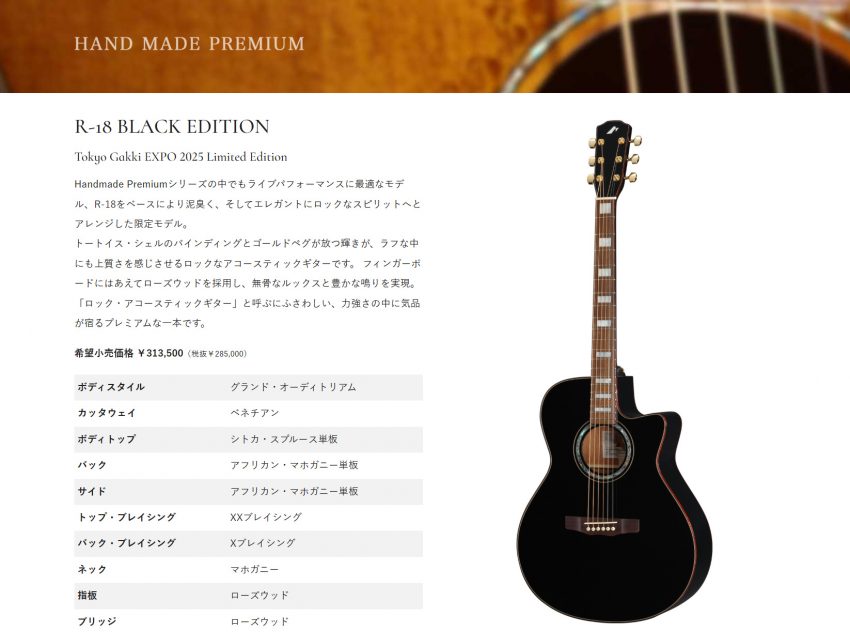 そして、R-18(無印)を更に尖らせたモデルの存在を知ります。そうそれこそ「R-18 BLACK EDITION(Tokyo Gakki EXPO 2025 Limited Edition)」です。